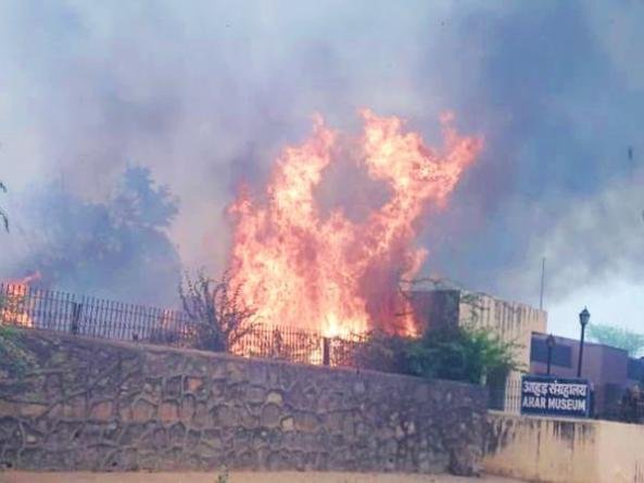 उदयपुर के आहड़ संग्रहालय परिसर में भीषण आग