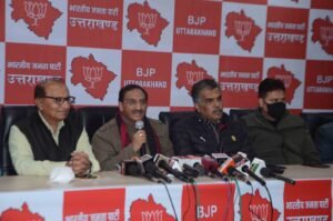कोरोना काल में सूबे के 15 लाख परिवारों को 2 साल तक मुफ्त राशन उपलब्ध कराया गया, उज्ज्वला योजना के तहत राज्य में 4।25 लाख गैस कनेक्शन मुफ्त दिए गए। संपत्ति में प्रदेश की आधी आबादी, महिलाओं को पूरा अधिकार दिलाया, साथ ही मातृ शक्ति के लिए ब्याज मुक्त ऋण की योजना की शुरुआत की गई। केंद्र की मदद से राज्य सरकार ने सड़क, रेल और हवाई मार्गों का जाल बिछाकर आधारभूत ढांचा मजबूत करते हुए प्रदेश को आज आर्थिक विकास के हाईवे पर पहुंचा दिया है। उन्होंने आरोप लगाते हुए कहा उत्तराखंड सैनिक प्रदेश है, लेकिन अपने जवानों के लिए एक भी बड़ा कार्य नहीं करने वाली कांग्रेस अब सैनिक प्रेमी होने का मुखौटा लगाकर जनता के बीच जा रही है। मोदी सरकार में 40 वर्षों से लटकाई वन रैंक वन पेंशन की मांग को पूरा किया। पांचवें धाम के रूप में सैनिक धाम की स्थापना की। करगिल युद्ध के समय पहली बार देशभक्तों को सम्मान दिलाने का कार्य भी अटल सरकार ने शुरू किया। दूसरी और उत्तराखंड की शान और दिवंगत जनरल विपिन रावत को गली का गुंडा बताने वाले, वीर जवानों को आतंकवादी और बलात्कारी तक कहने वाली कांग्रेस अब उत्तराखंड में सैनिकों की हितैषी दिखने का ढोंग कर रही है। पत्रकार वार्ता में प्रदेश उपाध्यक्ष डा. देवेंद्र भसीन, प्रदेश प्रवक्ता सुरेश जोशी, मीडिया प्रभारी मनवीर चौहान, रविंद्र जुगरान, विपिन कैंथोला, दिप्ति रावत आदि उपस्थित रहे।