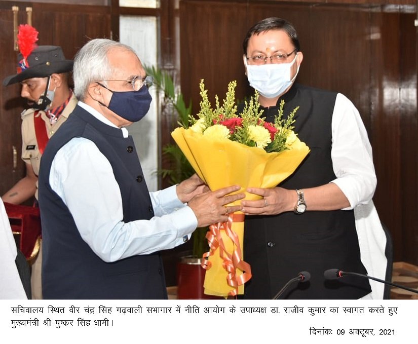 मुख्यमंत्री श्री पुष्कर सिंह धामी ने नीति आयोग उपाध्यक्ष डा. राजीव कुमार और उनकी टीम का उत्तराखण्ड में स्वागत करते हुए कहा कि आगामी 9 नवम्बर को उत्तराखण्ड 21 वर्ष का होने जा रहा है। प्रधानमंत्री जी ने हमें लक्ष्य दिया है कि 2025 में जब उत्तराखण्ड 25 वर्ष का होगा तो आदर्श विकसित राज्य हो। केंद्र व राज्य सरकार मिलकर उत्तराखण्ड के तेजी से विकास के लिए काम कर रही हैं।