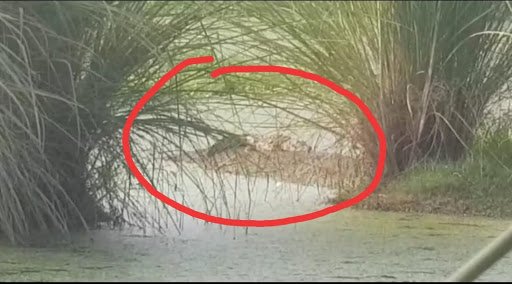 अनुमान लगाया जा रहा है मगरमच्छ बरसात केपानी में बह कर यहां पर पहुंच गया है,