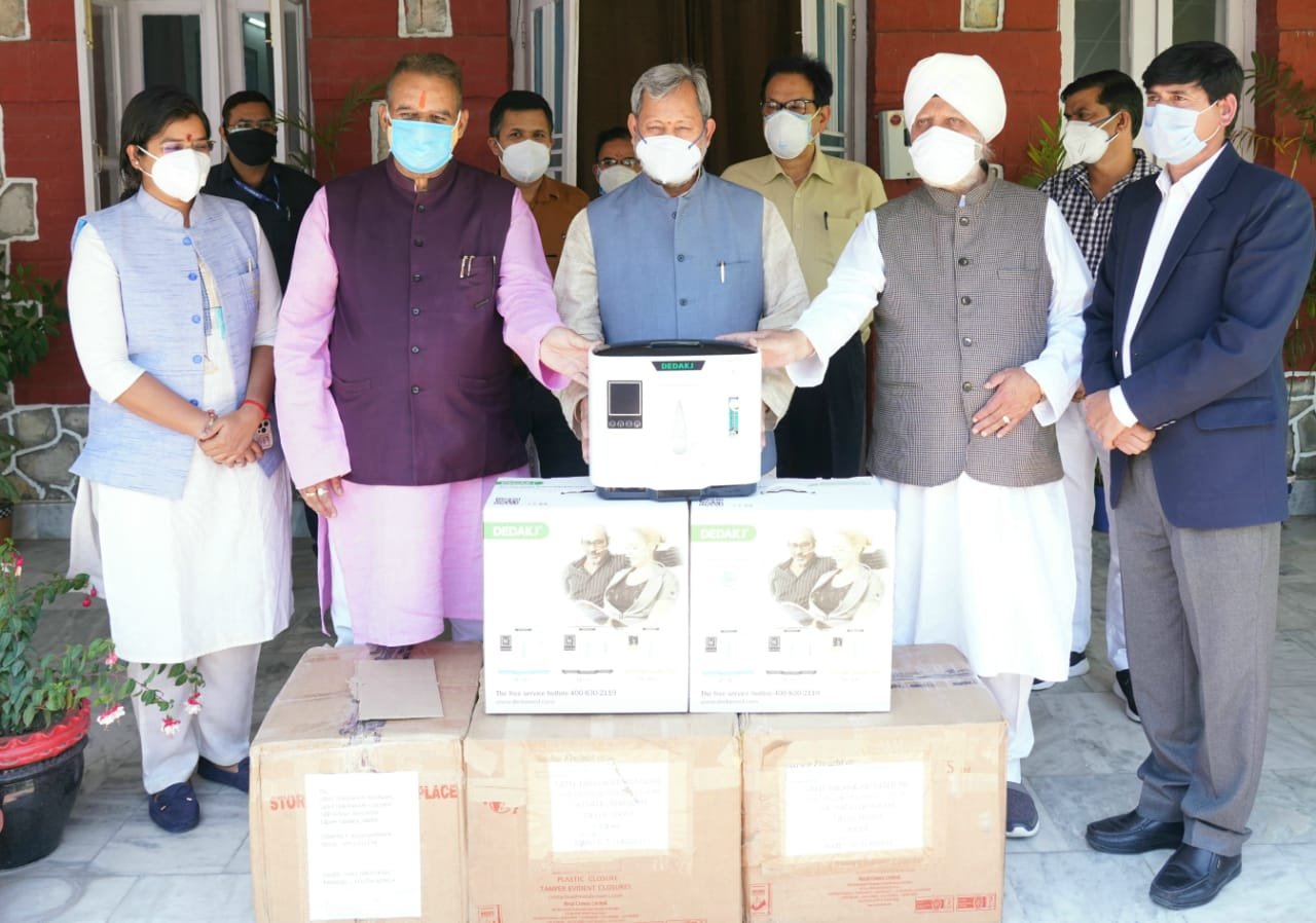 बीजापुर हाउस में आयोजित कार्यक्रम में संत निरंकारी मंडल के मसूरी जोनल इंचार्ज हरभजन सिंह व हेमराज ने मुख्यमंत्री तीरथ सिंह रावत को ऑक्सीजन कंसेंट्रेटर्स भेंट किए। इस अवसर पर कैबिनेट मंत्री गणेश जोशी भी उपस्थित रहे। मुख्यमंत्री तीरथ सिंह रावत ने कहा कि प्रदेश में सभी अस्पतालों में पर्याप्त ऑक्सीजन व अन्य संसाधन उपलब्ध है। उन्होंने कहा कि पिछले कुछ दिनों में शहरी क्षेत्रों में कोरोना संक्रमण की गति कुछ धीमी हुई है। पर्वतीय जिलों में कोरोना की रफ्तार को रोकने के लिए इंतजाम किए जा रहे हैं। मुख्यमंत्री ने कहा कि गांव स्तर पर ग्राम समितियां बनाई गई हैं। सभी जिलाधिकारियों को निर्देशित किया गया है कि ग्रामीण क्षेत्रों की नियमित मॉनिटरिंग की जाए। उन्होंने कहा कि सरकार का जोर ज्यादा से ज्यादा टेस्टिंग कराने पर है। लोगों को चाहिए कि वे बगैर संकोच टेस्टिंग कराएं। सरकार की ओर से किट भी उपलब्ध कराई जा रही है ताकि प्राथमिक उपचार घर पर ही मिल सके। वहीं, संत निरंकारी मंडल के जोनल इंचार्ज ने उत्तराखंड में अपने समस्त सत्संग घरों को कोविड सेंटर के रूप में परिवर्तित करने का सहमति पत्र भी मुख्यमंत्री को सौंपा।