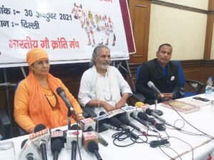 देहरादून। गोपाल गोलोक धाम रामेश्वरी भक्ति आश्रम ट्रस्ट, देहरादून द्वारा संचालित भारतीय गौ क्रांति मंच के तत्वाधान गौ माता को राष्ट्र माता घोषित करवाने के उद्देश्य से नई दिल्ली के ऐतिहासिक जंतर मंतर में आगामी 7 नवम्बर को होने वाला राष्ट्रव्यापी महा जनांदोलन की तारीख आगे बढ़ा दी गयी है। क्योंकि कोविड प्रोटोकॉल के कारण इसे अभी तक परमिशन नहीं मिल पायी है। यह जानकारी नई दिल्ली के प्रेस क्लब में आयोजित प्रेसवार्ता के दौरान भारतीय गौ क्रांति मंच के संस्थापक गोपाल मणी ने दी। अब यह आंदोलन देश भर के सभी जिला स्तर पर आयोजित किया जाएगा। उन्होंने कहा कि उनकी पांच प्रमुख मांगे है जिन्हें सरकार को हर हाल में मानना होगा। इसमें गौ माता को राष्ट्रमाता का दर्जा देना, गाय के गोबर का प्रयोग खाद के लिए, 10 वर्ष से कम उम्र के बच्चो को देशी गाय का दूध उपलब्ध कराएं, जर्सी गाय पर प्रतिबंध, दीन-हीन गायों के रहने का प्रबंध किया जाएं। उन्होंने भारत सरकार से गाय को राष्ट्र माता की घोषित करने की मांगी की है।
